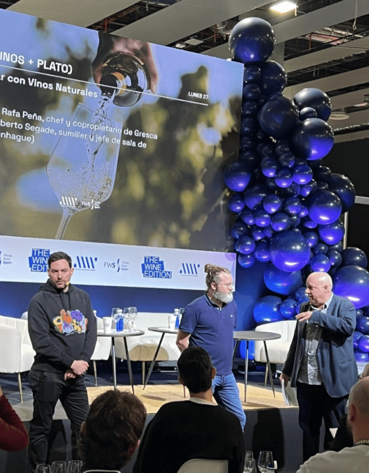 Para inaugurar los Vinomios, en las que chefs reconocidos y sus equipos de cocina imparten demostraciones maridadas, ofreciendo experiencias culinarias únicas a la hora del almuerzo y.permitiendo a los participantes disfrutar de combinaciones exquisitas de comida y bebida, Alberto Segade, sumiller y gerente del restaurante Kadeau**, y Rafa Peña, chef y co-propietario de Gresca en Barcelona, han impartido la primera sesión, en la que han abordado la cuestión “¿Cómo maridar con vinos naturales?”.