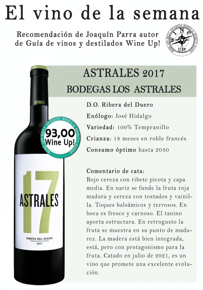 Bodega Los Astrales. D.O. Ribera del Duero Tempranillo con 18 meses de barrica.