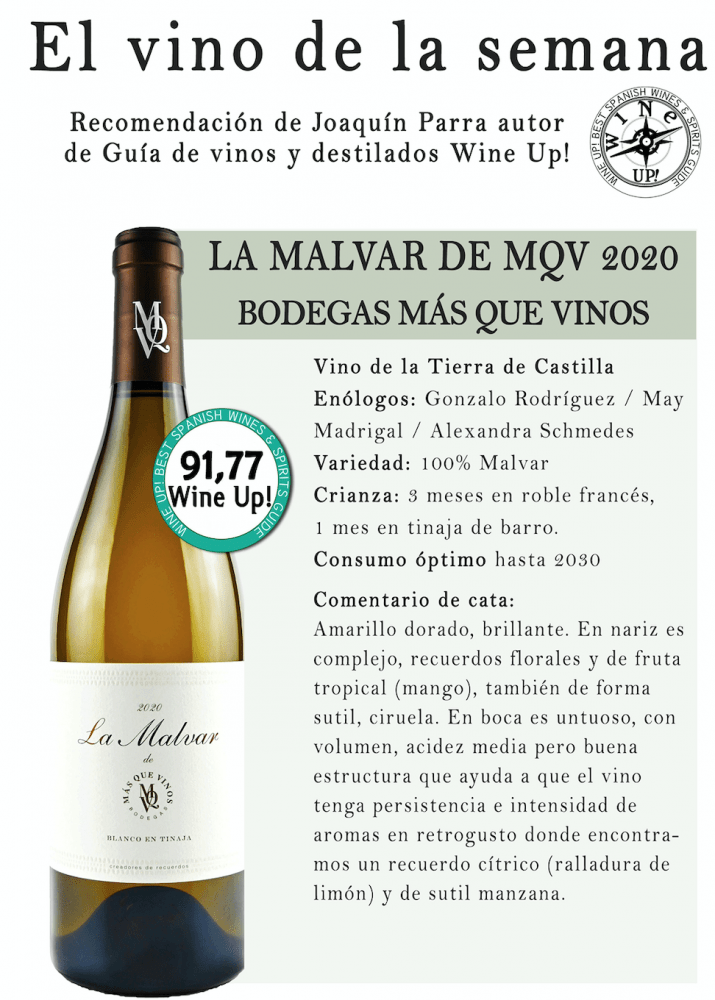 Bodegas Más que vinos. Vino de la tierra de Cástilla 100% Malvar Tres meses de crianza en roble y uno en tinaja de barro