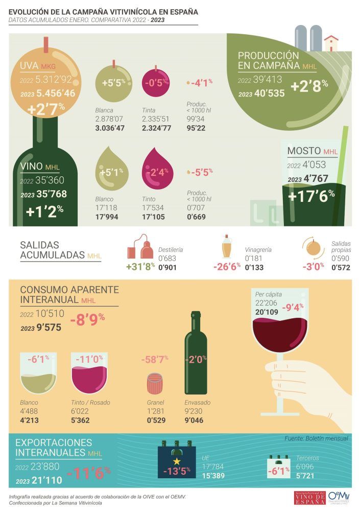 Los últimos datos del mes de enero ponen de manifiesto que Castilla-La Mancha ha sacado más de dos millones de hectolitros de vino y mosto solamente en un mes y, para Martínez Arroyo, eso es la muestra de que el sector está “compitiendo muy bien” en los mercados. “En otros lugares hay dificultades y en Castilla-La Mancha vemos oportunidades”, ha remarcado.
