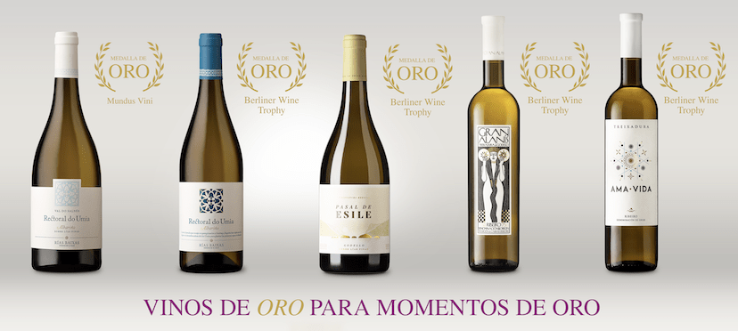Todos ellos son vinos blancos elaborados en distintas denominaciones de origen gallegas: D.O. Ribeiro, D.O. Rías Baixas y D.O. Ribeira Sacra, reflejo de la diversidad vitivinícola de Galicia.