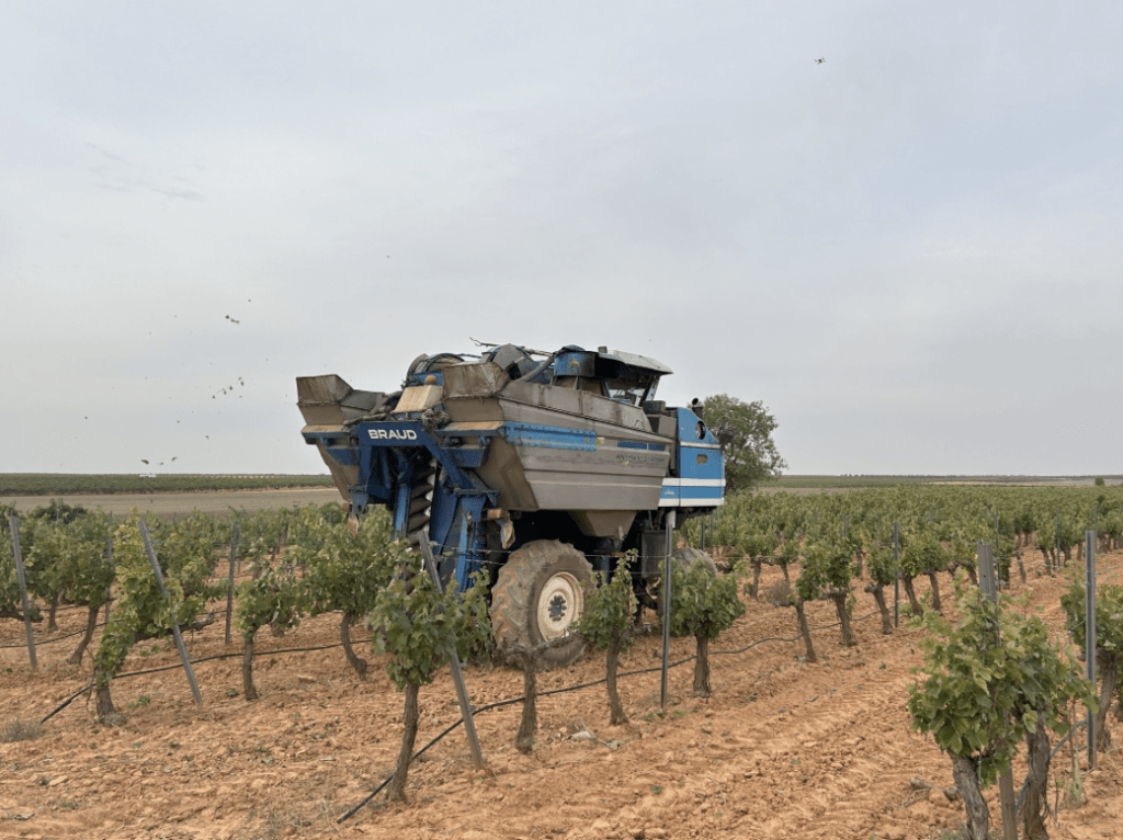 Castilla-La Mancha, que en 2024 obtuvo prácticamente una cosecha media de 22,7 millones de hl de vino y mosto; en la presente vendimia, según las estimaciones a 17 de septiembre y tras haber empezado a cosechar ya la variedad mayoritaria, la blanca Airén, disminuiría alrededor del 18% respecto al año anterior, con algo más de 4 millones de hl menos de vino y mosto.