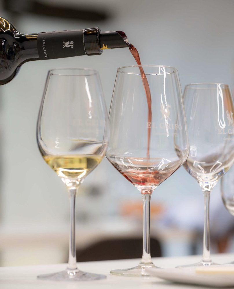 Desde espumosos como Brut Nature Reserva Malvasía volcánica y el Ancestral Blanco Ecológico, a blancos como el Semidulce colección, Lías o Finca Ramón Ecológico, sin olvidar, tintos como Grano a Grano o su único coupage, Ariana, y, por supuesto, el Rosado de Lágrima, o el Orange Wine. Por copas, solos o acompañados por diferentes propuestas culinarias. Destacan las tablas de aperitivos con batatitos gourmet de cultivo local en Jable y de quesos –una selección de 5 quesos de Canarias y confitura local de guayaba- ideal para maridar con El Grifo Semidulce Colección.