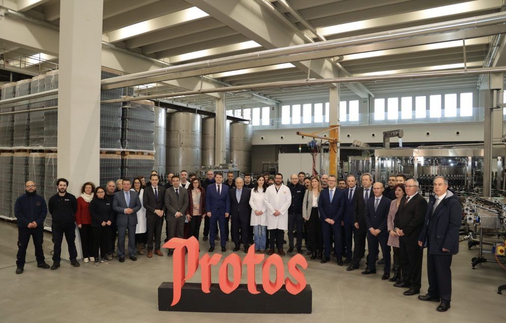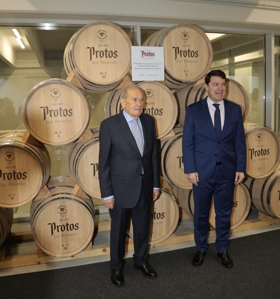 Durante la visita a las nuevas instalaciones de la bodega, el presidente de la Junta de Castilla y León, D. Alfonso Fernández Mañueco, ha señalado que “es un placer visitar estas instalaciones que son modélicas, que duplican la capacidad de Protos. Vemos un centro logístico de primer nivel y además con todos los estándares de sostenibilidad de hoy en día”. Asimismo, en su discurso, ha reseñado que la bodega es imprescindible “porque generáis empleo, pero también la internacionalización. Gracias a vosotros, Castilla y León lidera las exportaciones internacionales”.