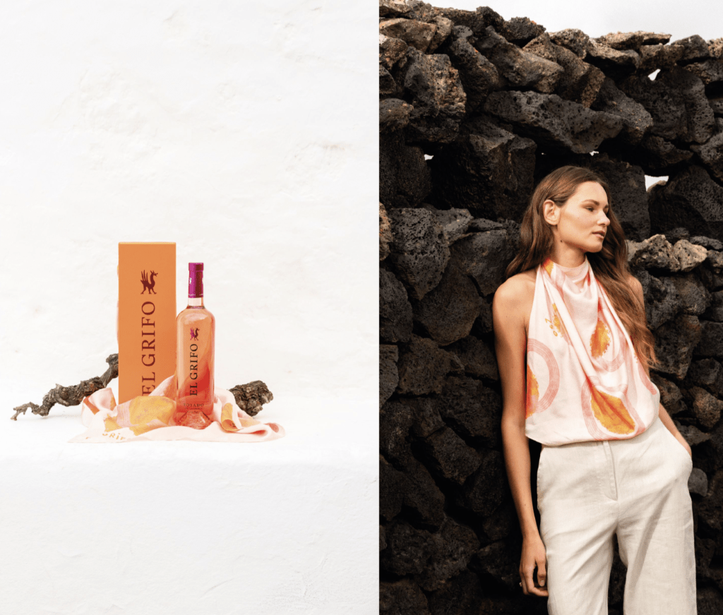 “Es un pañuelo que une vinicultura y moda, y representa valores que defendemos en nuestro día a día: tradición e innovación. Con esta creación nos gustaría poner en valor la identidad de Lanzarote y la de El Grifo como defensora de su tradición, historia y costumbres”, apuntan las creadoras.
