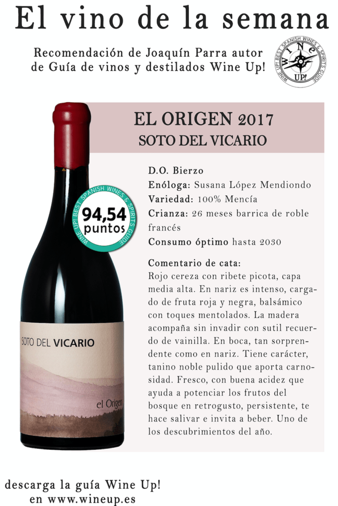 Soto del Vicario D.O. Bierzo. 100% Mencía, con crianza de 26 meses en barrica