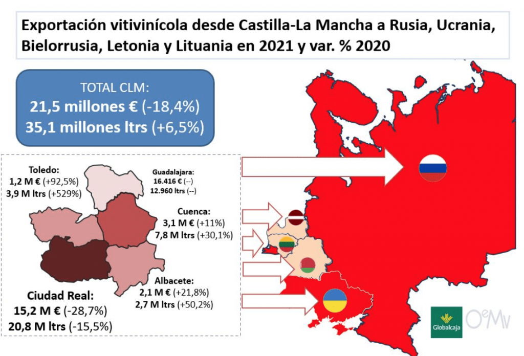 Castilla-La Mancha se juega 21,5 millones de euros en exportación vitivinícola por el conflicto Rusia-Ucrania