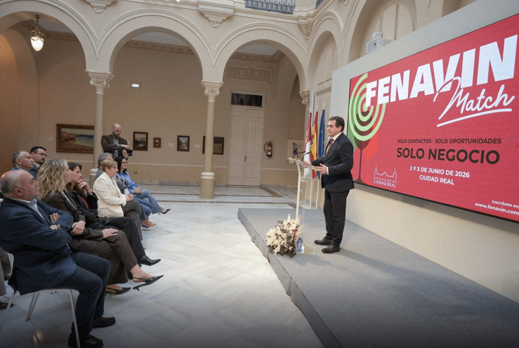 El presidente de la Diputación de Ciudad Real y de FENAVIN, Miguel Ángel Valverde, ha presentado este miércoles en el Palacio Provincial FENAVIN Match 2026, un encuentro profesional que nace con el objetivo de reforzar la posición estratégica del vino de la provincia y de toda España en el mercado internacional mientras se potencia a la capital como un espacio permanente de negocio, análisis y proyección del sector vitivinícola.