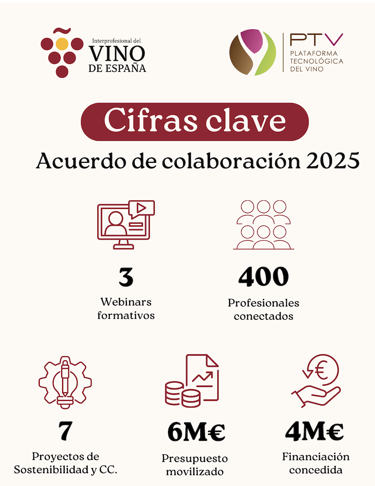 Madrid, 5 de marzo de 2026-. La Organización Interprofesional del Vino de España (OIVE) y la Plataforma Tecnológica del Vino (PTV) hacen balance del programa de actividades desarrollado durante 2025 en el marco de su acuerdo de colaboración, cuyo objetivo es reforzar la I+D+i como palanca de competitividad y sostenibilidad del sector vitivinícola español.