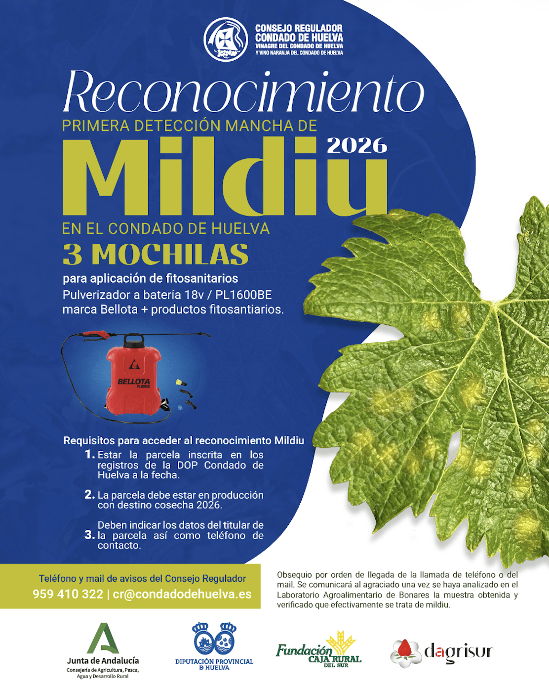 EL CONSEJO REGULADOR CONDADO DE HUELVA CONVOCA LOS ‘RECONOCIMIENTO MILDIU 2026’ PARA FORTALECER LA VIGILANCIA FITOSANITARIA DEL VIÑEDO